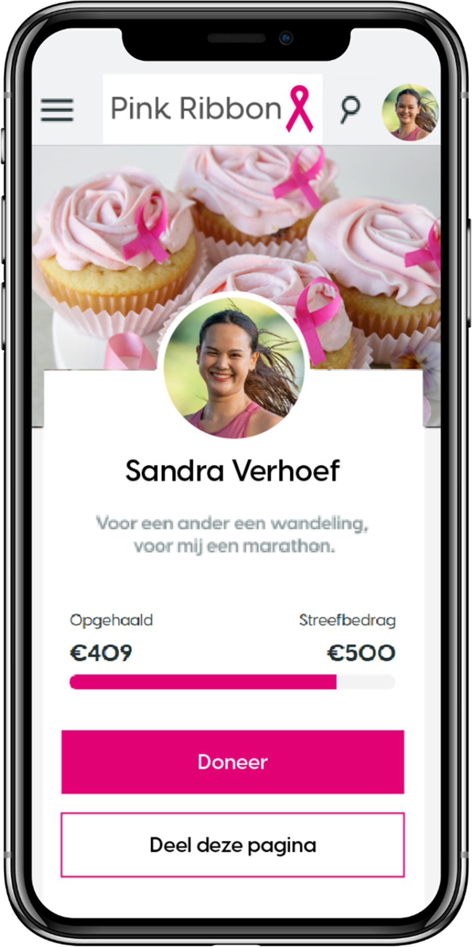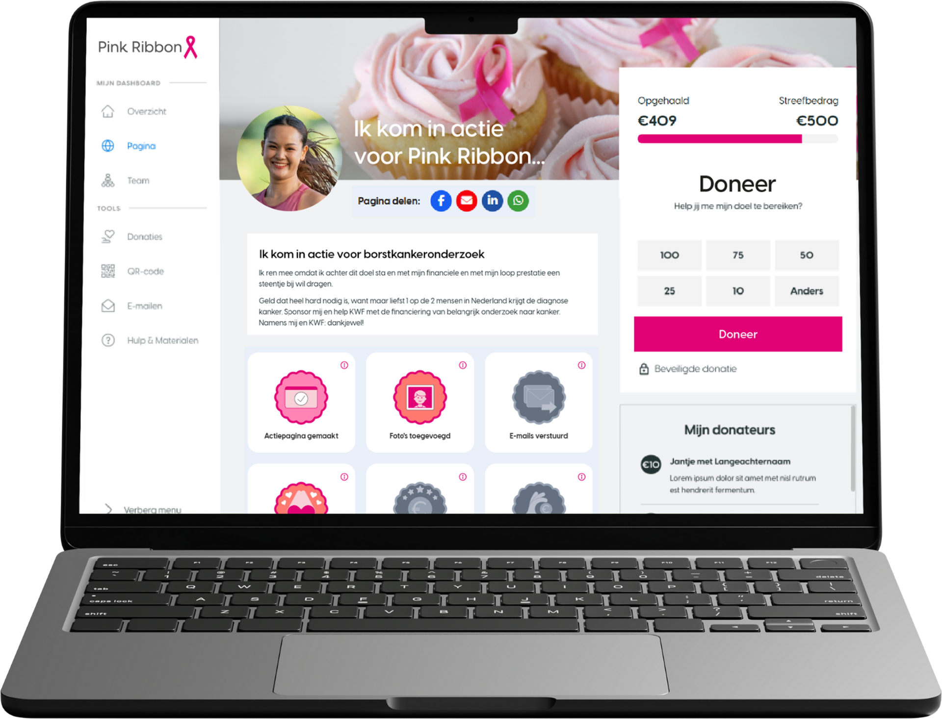 Wij gaan zorgvuldig om met jouw gegevens. Daarover lees je alles in ons privacy statement. Alle donaties lopen via een beveiligde omgeving en komen direct bij Pink Ribbon terecht. Jouw persoonsgegevens gebruiken we alleen voor je actie en communicatie hierover. Donateurs kunnen zelf kiezen of ze anoniem blijven of een bericht achterlaten.