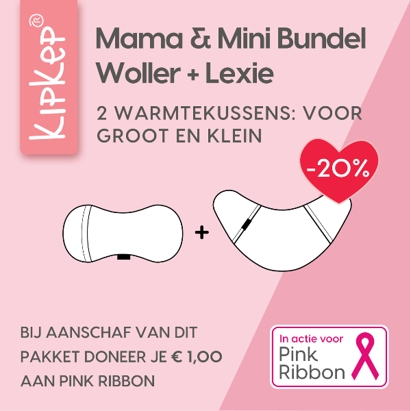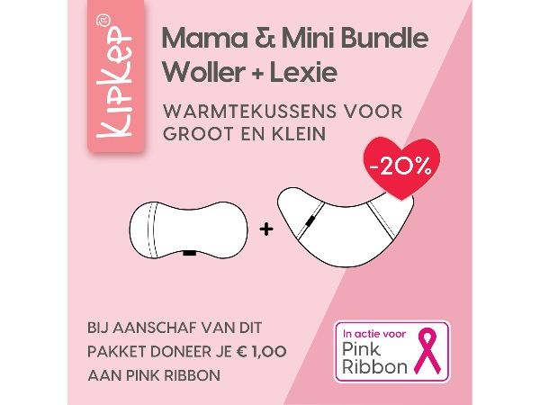 In oktober steun je met de Mama & Mini Bundle niet alleen jezelf en je kleintje, maar ook het goede doel. Van iedere verkochte bundel gaat €1,- naar Pink Ribbon. Bovendien shop je de bundel nu met extra korting.